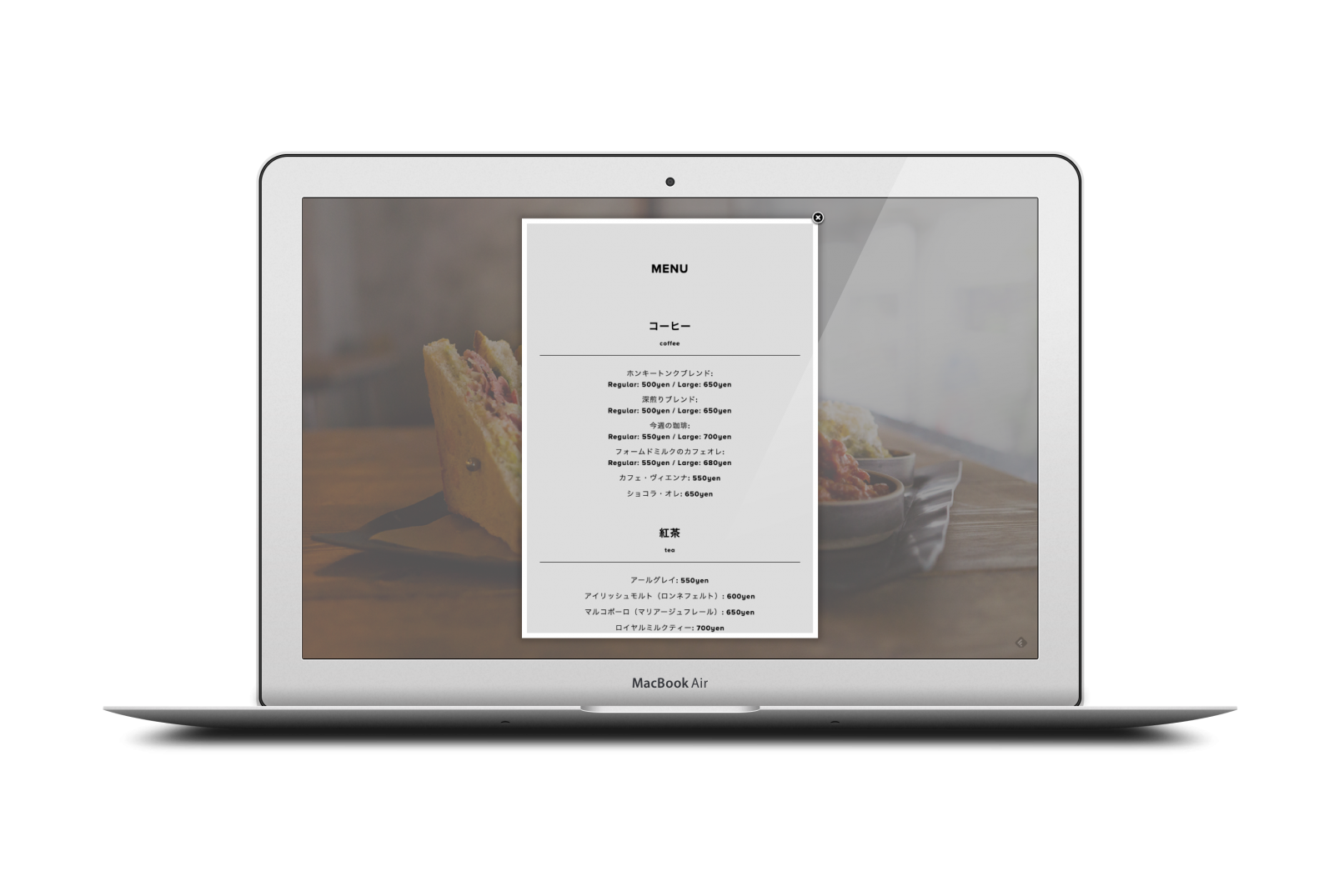このカフェで起こるであろう日々のストーリーを写真で追いかけ、それをトップページのスライドショーで展開しました。サイト構成はシンプルにしています。