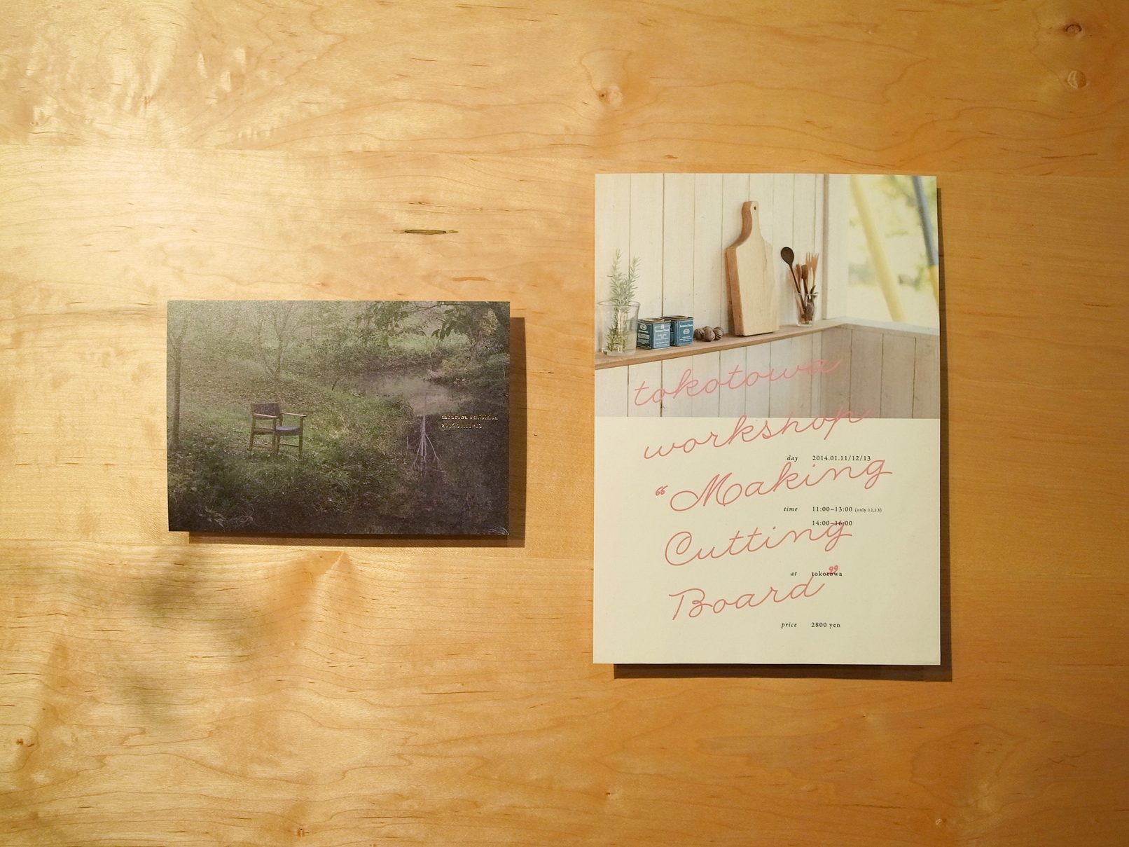 木の素材感が全面に出た温かみのある家具なので、なるべく余計な事はせず、調和が取れる環境や背景、書体選びなどを心がけました。これ以降も展覧会、ワークショップなどの企画やその印刷物、当日の店内サインやアンケートなどを総合的に手がけたりと、ブランディングにも関わる領域でのアドバイスや制作などを継続して行なっています。
